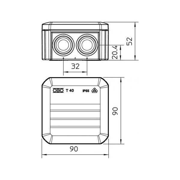 جعبه تقسیم IP55 روکار، 52*90*90 میلیمتر، همراه گرومت، بدون ترمینال